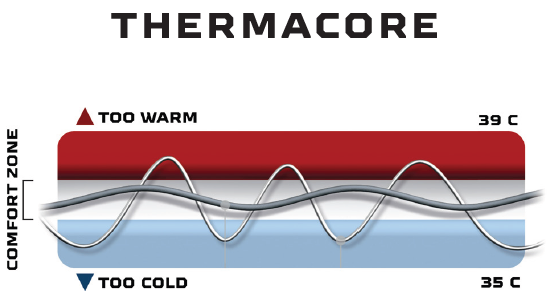 What’s ThermacCore Heat Dispersion Technology target? Effective Decrease of the core body temperature, proactive reduction of perspiration and improved heat dispersion from the body to the outside.